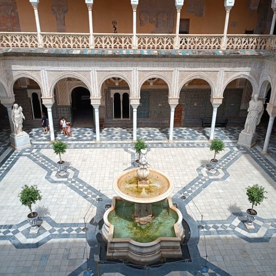 🎁 ¡Regala esta experiencia a tus seres queridos! Haz clic aquí para ver nuestra tarjeta de regalo. Qué vas a disfrutar 🏰 Una visita guiada por la Casa de Pilatos en Sevilla 🕌 Un paseo por los impresionantes jardines y la planta baja de este palacio renacentista 👉 Acceso a la capilla privada, con los detalles arquitectónicos que hacen único este monumento Información 📅 Fecha y hora: selecciona la fecha y hora que quieras directamente en el selector de entradas 📍 Lugar de encuentro: Casa de Pilatos, Sevilla ⏳ Duración: 1 hora 👤 Edad: Evento para mayores de 10 años. ❗ El tour es en español 🎫 Los menores de 0 a 5 años tienen entrada gratuita, pero deben ir acompañados siempre de un adulto 🚩 Después de comprar tu ticket en Fever, es imprescindible seguir las instrucciones que encontrarás en tu email de confirmación de compra para completar tu reserva Descripción Descubre la majestuosidad de la Casa de Pilatos en Sevilla con esta visita guiada, que incluye entrada al monumento. Este recorrido de aproximadamente una hora te llevará a través de los impresionantes jardines y la planta baja de este palacio renacentista, un ejemplo destacado de la arquitectura sevillana. Explora la fusión de estilos mudéjar y renacentista, admira sus patios decorados con azulejos tradicionales y disfruta de su colección de arte, que incluye esculturas romanas y griegas. Conocerás también la capilla privada y los detalles arquitectónicos que hacen único este lugar. ¡Consigue tus entradas para la Visita guiada a la Casa de Pilatos en Sevilla!