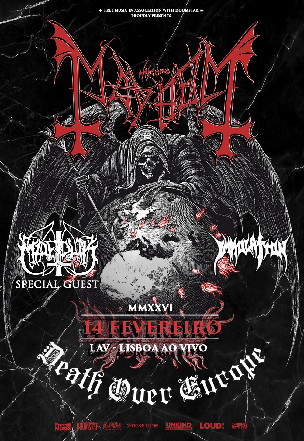 No dia 14 de fevereiro de 2026, o LAV recebe Mayhem, Marduk e Immolation na digressão 'Death Over Europe'. Uma noite de metal extremo imperdível.