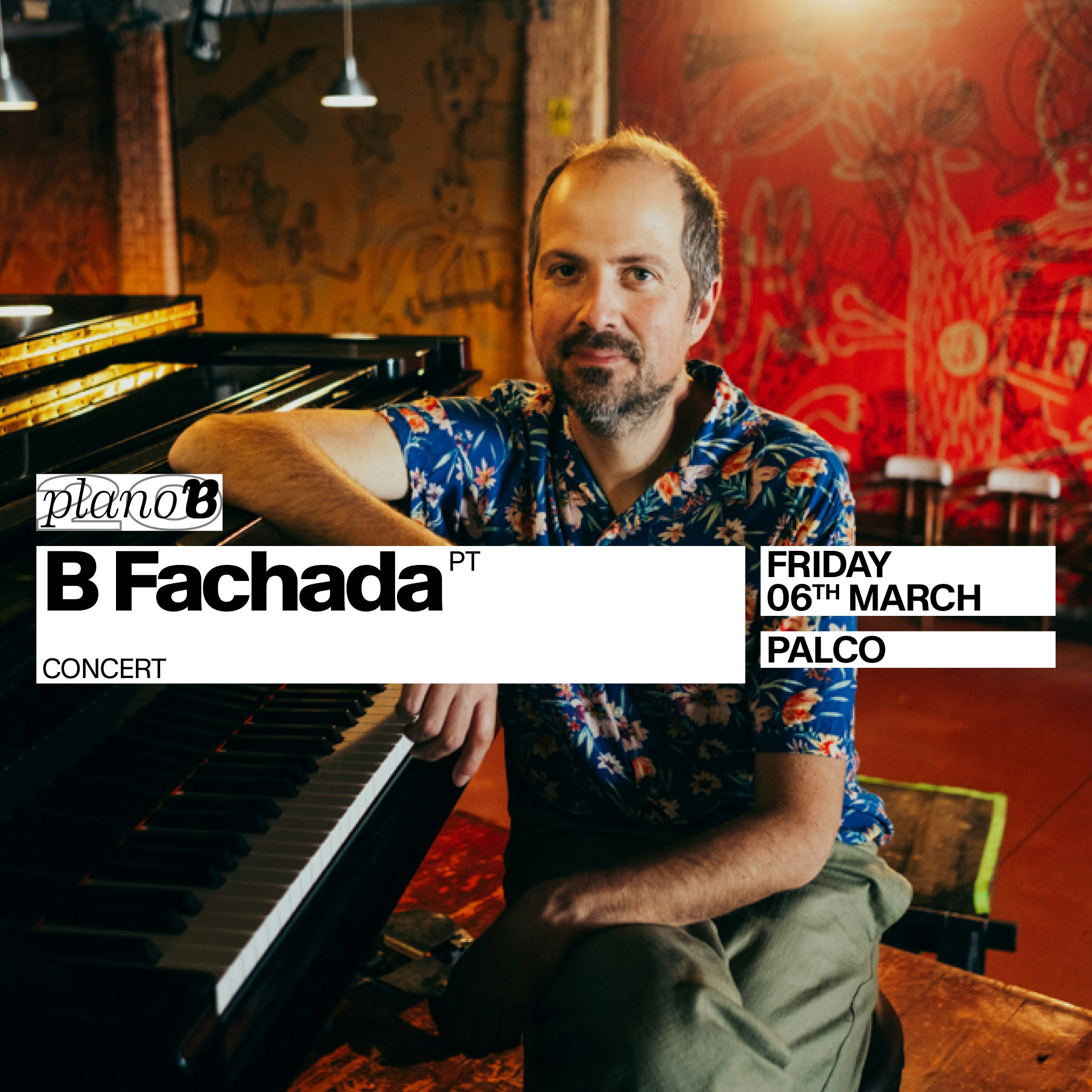 B Fachada apresenta um concerto no Plano B, em Porto, no dia 6 de março de 2026, às 22:30. O evento é para maiores de 18 anos e os bilhetes custam €15,92.