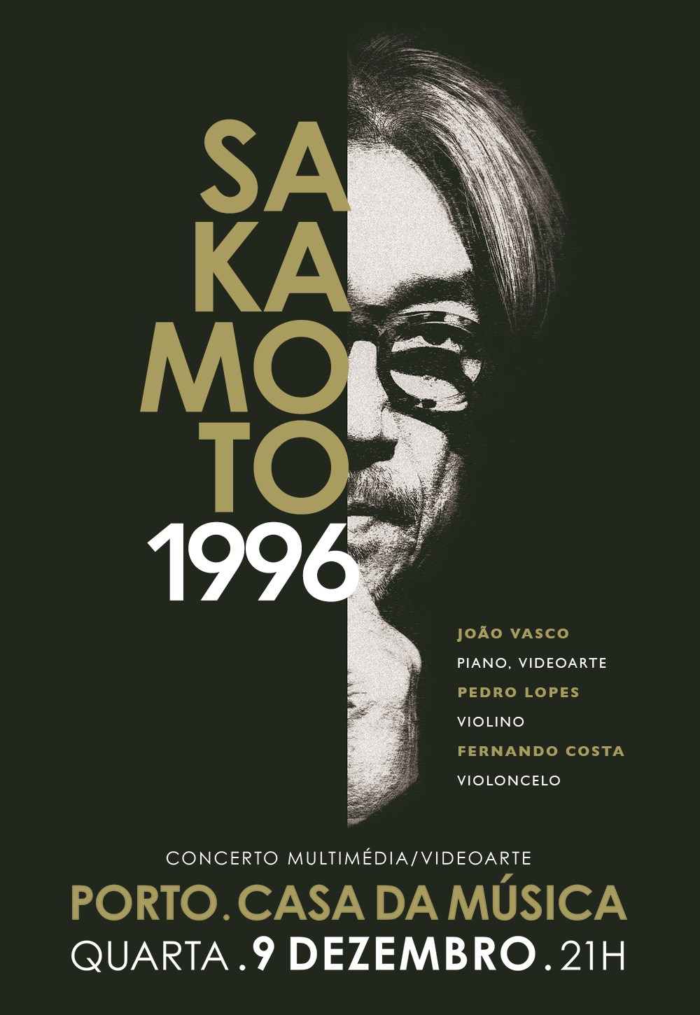 Concerto em homenagem a Ryuichi Sakamoto, com piano, violino e violoncelo, apresentando a obra '1996' e composições de João Vasco. Uma experiência multimedia única.