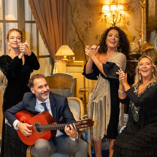 Qué vas a disfrutar 🎄 Un concierto de zambomba jerezana, una preciosa tradición navideña del sur 🥂 Una deliciosa cena formada por 5 platos, postre y bebida 🏛 Un elegante ambiente en el interior del histórico Hotel El Palace Barcelona, el hotel de lujo más antiguo de la ciudad Información 📍 Lugar: Hotel El Palace Barcelona, sala Parrilla 📅 Fecha y hora: 15 de diciembre a las 20:00 - La sala se abrirá a las 19:45 - Es necesario que llegues entre las 19:45 y las 20:00 ⏳ Duración: 90 minutos aproximadamente con pausa a las 20:45 👤 Edad: mayores de 18 años ♿ Accesibilidad: recinto habilitado para personas en silla de ruedas ❗ Una vez que comience el concierto solo se podrá acceder a la sala entre canciones, cuando se lo indique el personal del hotel, pero no en mitad de la actuación Menú en El Palace Barcelona Puedes consultar el menú completo aquí Descripción ¿Quieres disfrutar de una de las tradiciones navideñas más hermosas de Jerez sin salir de Barcelona? El 15 de diciembre tendrá lugar una típica Zambomba llena de alegría y tradición en el célebre Salón Parrilla del hotel. Vena disfrutar de los villancicos andaluces en un ambiente festivo acompañado de una gastronomía típicamente jerezana. ¡Consigue tus entradas para Zambomba de Jerez en El Palace Barcelona!