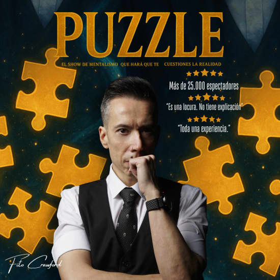 🎁 ¡Regala esta experiencia a tus seres queridos! Haz clic aquí para ver nuestra tarjeta de regalo. Qué vas a disfrutar 🎭 Psicología, comunicación no verbal, y comedia 🔥 El humor agudo y elegante de Fito Crawford 👉 Podrás disfrutar del espectáculo tomándote lo que quieras en la barra del bar (consumiciones no incluidas) Información 📅 Fecha y hora: elige en el selector de entradas 📍 Lugar: Elige según la fecha del espectáculo 👤 Edad: mayores de 18 años Descripción En Puzzle experimentarás una combinación única de habilidades como la psicología, comunicación no verbal, y comedia. Todo, en una hora llena de fenómenos extraordinarios: desde la precognición y coincidencias imposibles hasta el icónico oráculo, donde Fito Crawford desvela los secretos del futuro de los asistentes. Todo ello aderezado con su humor agudo y elegante. Un show con múltiples elementos que encajan a la perfección, formando un todo donde la pieza final está dentro de tu propia mente. ¿Estas listo para descubrir donde encajas? ¡Consigue tus entradas para Puzzle, el show que te hará cuestionarte la realidad!
