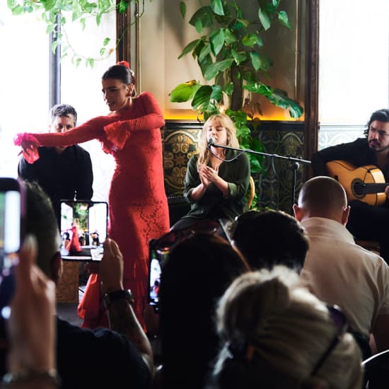 🎁 ¡Regala esta experiencia a tus seres queridos! Haz clic aquí para ver nuestra tarjeta de regalo. Menú Brunch Revoltosa Prado Madrid 🎫 Menú Brunch con 8 tapas + cóctel de bienvenida + espectáculo de flamenco para 1 persona Qué vas a disfrutar 🌟 El primer plan gastronómico que combina el formato brunch con el arte del flamenco en directo 💃🏼 Los mejores bailarines, cantaores, guitarristas y más artistas en directo 🍴 Un suculento menú brunch con lo mejor de nuestra gastronomía más castiza Información 📅 Fecha y hora: los domingos de 12:00 a 14:00 📍 Lugar: Revoltosa Prado 👤 Edad: los menores de 18 años pueden acceder acompañados por un adulto 📱 Encontrarás información importante sobre tu reserva en tu mail de confirmación y en tus tickets Menú Brunch: Salmorejo cordobés con jamón ibérico y picadillo de huevo Alcachofas fritas con puré de batata y cilantro Croquetón ibérico y confitura de hortalizas asadas Torrezno de panceta con patatas revolconas Vieira a la parrilla con majao de tomate Minihamburguesa Chulapa Tartar de salmón sobre papadom de lenteja y cebolla encurtida Sobao frito con dulce de leche / Fried sobao with dulce de leche sauce Descripción ¡Disfruta del primer Brunch Flamenco de Madrid! En Flamenco Brunch podrás disfrutar de los mejores artistas: cantaores, guitarristas, bailaores… ¡y de la mejor gastronomía ibérica! Primero, te darán la bienvenida con un cóctel de bienvenida, para para pasar después a un suculento menú compuesto de algunos de los platos más deliciosos y típicos de nuestra gastronomía. Todo ello mientras te dejas llevar por ese arte tan mágico como es el flamenco en todo su esplendor. ¡Consigue ya tu menú Brunch Flamenco de Madrid y olé!